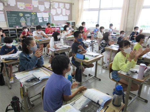 1時間目は音楽の授業でした。われは海の子のリズムをとりました。速度記号について学習して、正確な速度でリズムをとることを学びました。