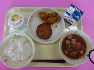 ご飯、牛乳、お好みはんぺん、かぼちゃのにつけ、