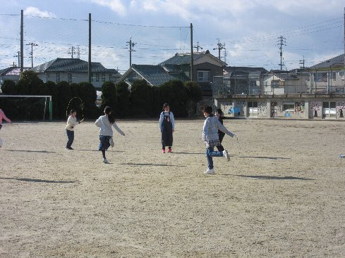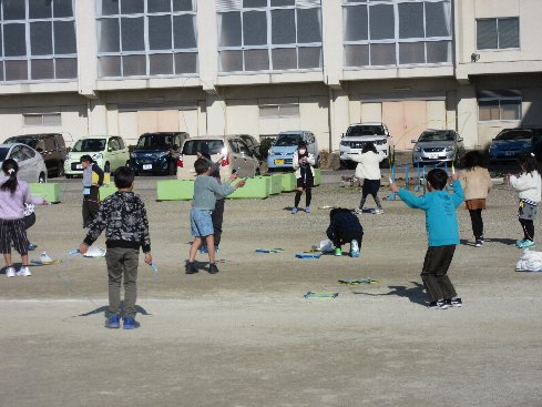 今週から2限放課に短縄大会が行われています。毎日、2限放課に縄跳びに挑戦して名人を目指しています。寒い中、体を動かして寒さに負けない体を作ろうということです。