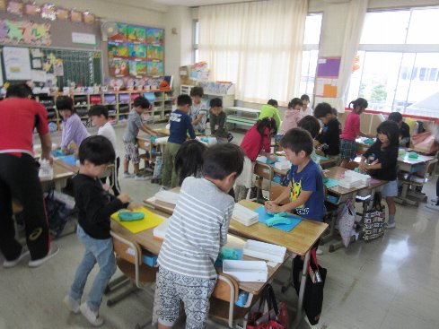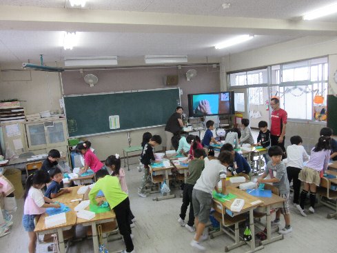 1時間目は図画工作の授業でした。ねんどで作品を作りました。
