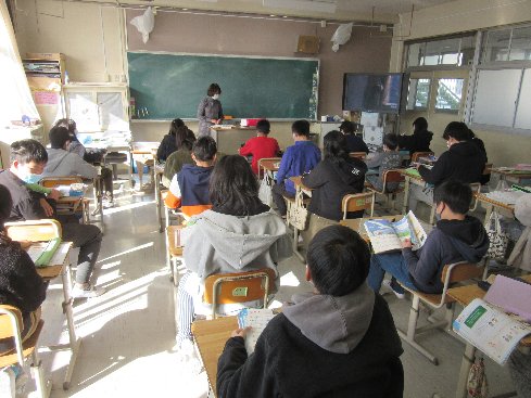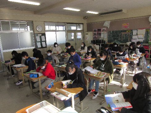 2時間目は音楽の授業でした。「風を切って」をCDで聞きました。