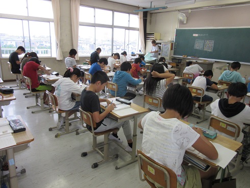 7月18日(水)3時間目は書写の授業でした。「五月雨を集めて早し最上川」を硬筆で清書しました。
