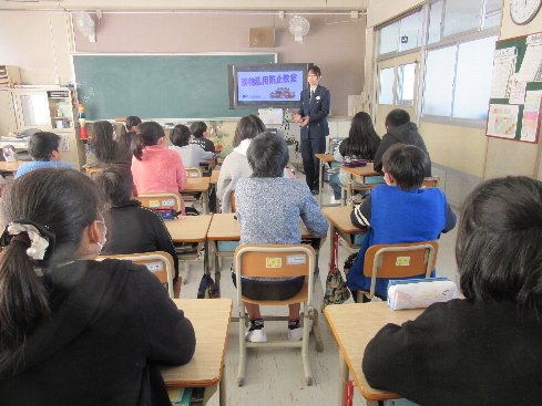 3・4時間目は薬物乱用防止教室を行いました。津島警察署の少年係の方に来ていただいて、教えていただきました。