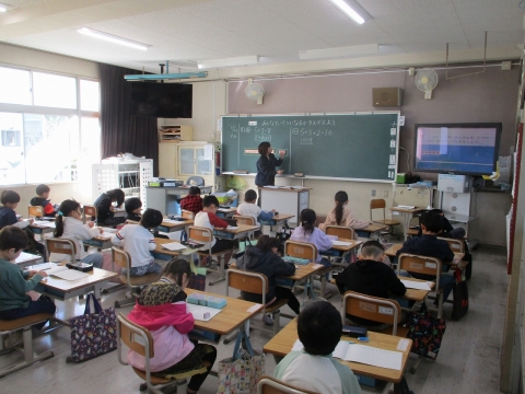たす数が2つ以上のたし算(〇+〇+〇=)の学習に取り組んでいました。