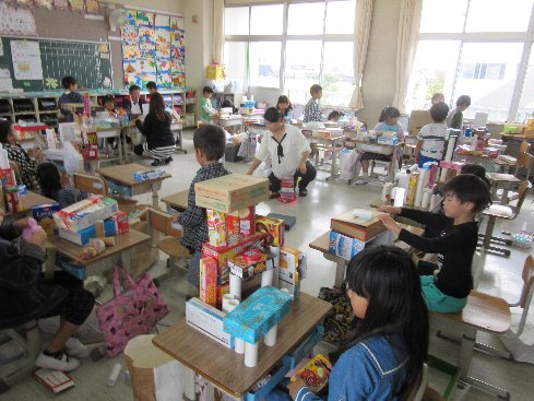 5月30日(水)3時間目は算数の授業でした。ブロックを使って色々な形を作りました。