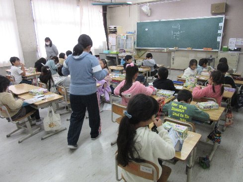4時間目は理科の授業でした。「風とゴムの働き」で、風で動く車の帆をデザインしました。