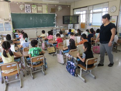 7月19日(木)1時間目は夏休みの宿題を配布しました。一つ一つ、やり方の説明を受けて、確認しながら配布しました。