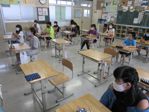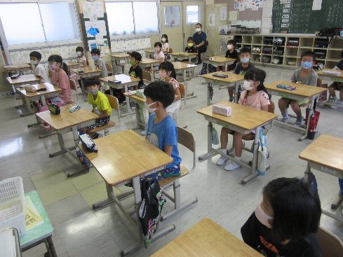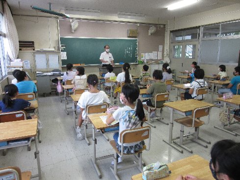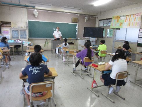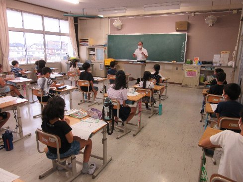 昨年度まで、毎週月曜日に行っていた朝礼も、新型コロナウィルス感染症予防のため、実施できなくなり、「せめて月に1度くらいは」と予定していましたが、全校が集まるのは、しばらく見合わせようということになりました。かわりに校長先生が教室を回ってお話をする形で実施するのも、すでに3回目になりました。今日は「言葉の力」についてお話しされました。(詳細は「校長室より」をご覧ください。)