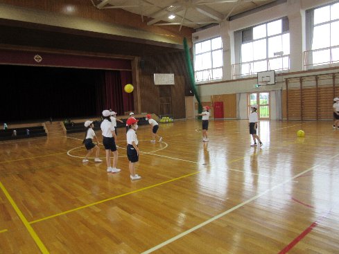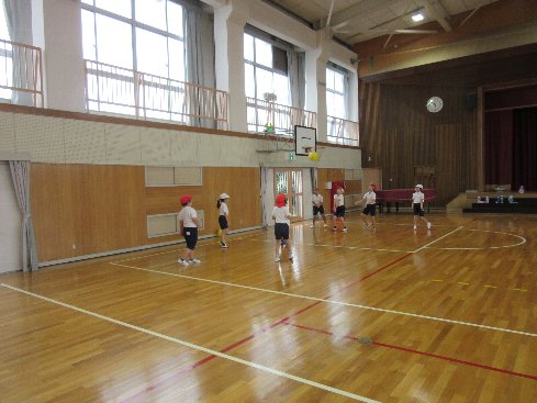 2時間目は体育の授業でした。ソフトバレーボールに取り組みました。