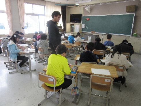 4月27日(金)2時間目は書写の授業でした。始筆、終筆に気をつけて書くように指導を受けていました。