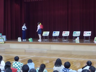 2年生は、給食センターから栄養教諭の先生をお招きし、給食センターの役割や食材の届け方などについて学びました。