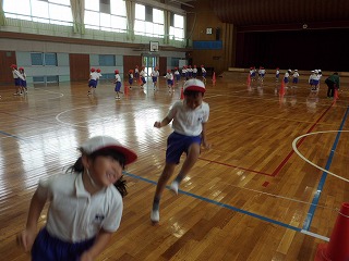 タイミングを合わせて元気いっぱいに体を動かしました。