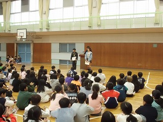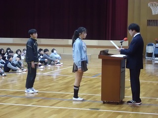 朝礼では、優良児童と書写コンクールの表彰があり、代表児童には大きな拍手が送られました。