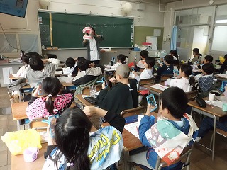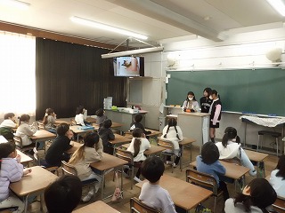 学校歯科医の先生と歯科衛生士さんに来ていただき、2年生が「6歳臼歯」について学びました。
