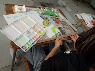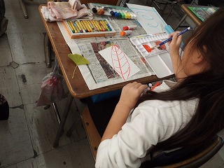3年生の児童が、日頃お世話になっている方へ感謝の絵はがきを作成しました。講師の先生にコツを教わりながら、気持ちを込めて丁寧に仕上げました。
