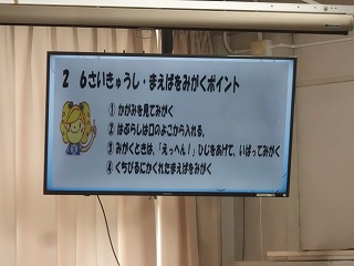 役割や磨き方を聞き、子どもたちは模型を見ながら熱心に取り組んでいました。
