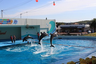 イルカショーでは迫力あるジャンプに大きな歓声が上がり、子どもたちは目を輝かせて見入っていました。