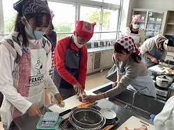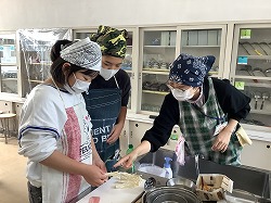 調理実習には、保護者の方もボランティアとして参加してくださり、和やかな雰囲気の中で学ぶことができました。