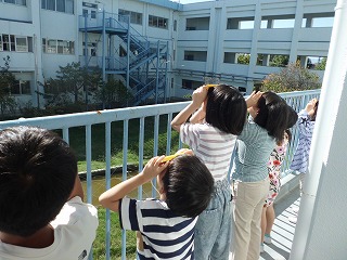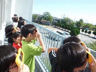 今日は3年生が理科の時間に、太陽の観察を行いました。