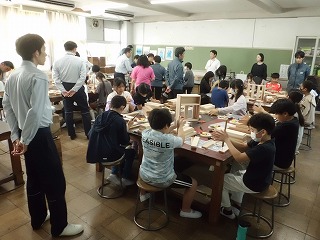 6年生は「ものづくり魂」と題して、清水建設の木工場の方を講師にお迎えし、木工について学びました。