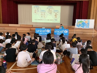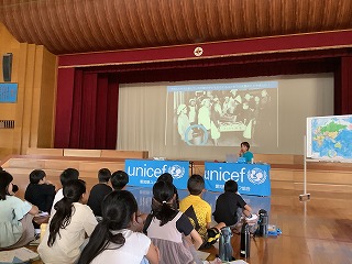 4年生は、日本ユニセフ協会の方をお招きし、「ユニセフと世界の子どもたち」というテーマで出前授業を受けました。