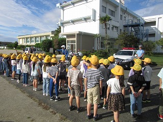 警察の方のお話を真剣に聞く姿も見られ、交通安全への関心を高めるよい機会となりました。