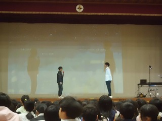 弓削田さんの心に響く音楽と温かいお話に、子どもたちは感動していました。合唱の魅力や音楽の力を改めて感じる貴重な時間となりました。