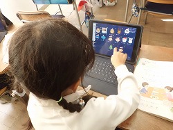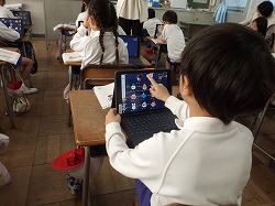 1年生は、タブレットを使って「けいさんのかみしばい」に取り組みました。