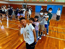 今日は、1年生と6年生が異学年交流会を行いました。じゃんけん列車や猛獣狩りを楽しみました。ゲーム中の1年生を見守る6年生のやさしい眼差しやみんなの笑顔が印象的でした。