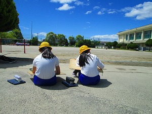 6年生の児童は、思い思いに場所を選び、奥行きや構図を工夫して描き進めていました。