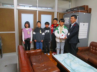 児童会が中心になって取り組んだ赤い羽根共同募金を、あま市社会福祉協議会の方へお渡ししました。