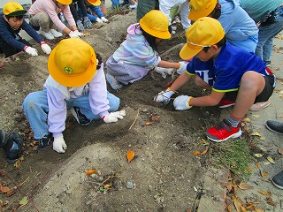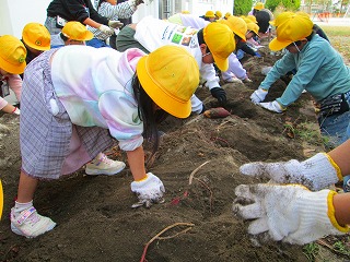 2年生は栽培していた「さつまいも」のいもほりを行いました。途中でおらないようにまわりの土を一生懸命にほりました。