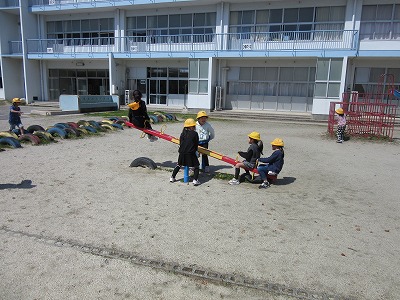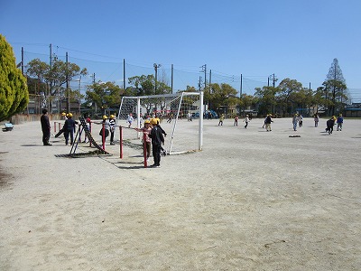 風の強かった昨日とはちがって、今日は穏やかな春らしい天気でしたが、子どもたちは新しいクラスの友達と元気いっぱい遊んでいました。