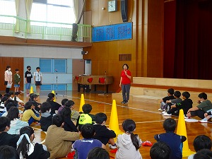 運動会に向けて赤白各ブロックの団結集会が行われました。児童会役員からのスローガン発表のあと、応援コールの練習をし、最後に校長先生から激励の言葉とエールがありました。また、授業後には明日からの全校練習のために教職員でトラックや徒競走のラインを引きました。