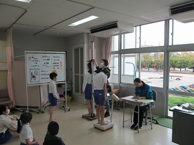 5年生・6年生が身体測定を行いました。保健の先生から学校で起こったけがについてのお話の後、身長と体重を計測しました。