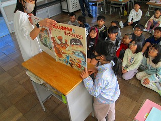 朝の時間、PTA読み聞かせボランティアが行われました。