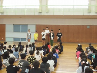 朝礼では、後期児童会役員および各学級委員の認証式が行われました。