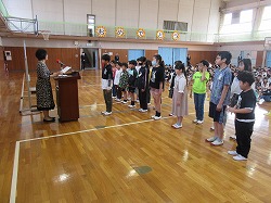 校長先生より、4月から7月までの合い言葉「あいさつ・笑顔・聴く姿勢」についての話がありました。
