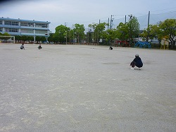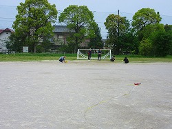 今日は、子どもたちが帰った後に教職員皆で運動会の準備をしました。トラックや直線のコースにポイントをつけたり、サッカーゴールを移動したりしました。教職員も運動会の成功に向けて準備を進めています 。