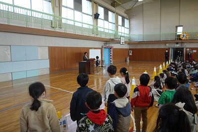 修了式のあとに、5年生が学年集会を開いていました。いよいよ最高学年ですね!