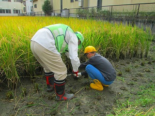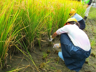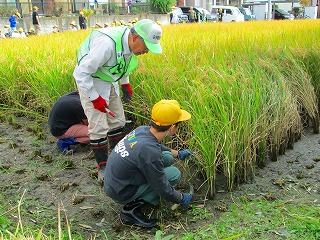 田植え体験に引き続き、収穫の貴重な体験をさせていただきました。