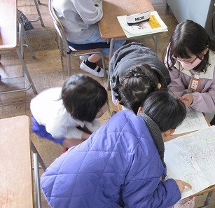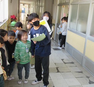 はじめに1年生が迷子にならないように高学年の班長が1年生をお迎えに行き、各教室では自宅の場所や朝の集合場所、出発時刻などを確認しました。