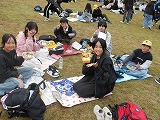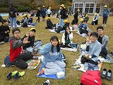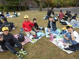 楽しんでいました。バッターをアウトにするためには、守備側は一列に並んで座らなければなりません。チームワークがものをいうようです。