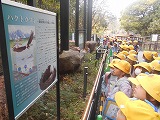 バスに乗って校外に出かける初めての体験。子どもたちはドキドキわくわくしながら東山動物園へ出かけました。たくさんの生き物を見学した後、「うんちのひみつ」のお話を聞きました。体の大きさや食べるものによって便の量や形、色などがちがうことに驚いていました。便は、生き物にとっても健康のバロメーターです。