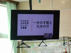 月曜恒例のハッピートークは、今日は、劇団四季のOGの方に夢の実現について語っていただきました。みんな真剣に話に聴き入っていました。