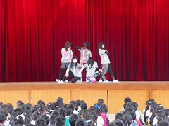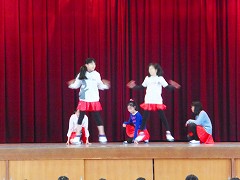 今朝の児童集会は、バトンダンスクラブが今までの練習の成果を披露する場として、発表会を行いました。4年生から6年生までの女子が、振り付けや立ち位置など、何度も相談し何度も練習して今日を迎えました。600人以上が見つめる中での発表は、かなり緊張したこと思いますが、上手な演技を披露してくれました。