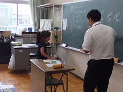 期間はわずか2週間しかないため、今日早速2年生3組で、来週行う研究授業と同じ授業の予行実習をしてもらいました。まだまだ戸惑いながらでしたが、本人にとってもとてもよい経験になったと思います。それでも子供たちは目を輝かせて聞いていました。若いというのはうらやましいです。
