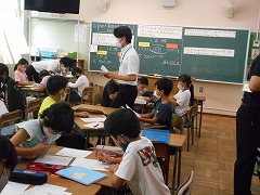 実習生以外にも多くの先生が参観に来ていました。実習生の授業は、経験が浅く、未熟なところも多いために、見ている先生には自分の授業を振り返るとてもよい刺激になります。実習の当初に、とにかく失敗を恐れず、どんどん前向きにチャレンジするよう話しましたが、よくがんばっていたと思います。午後から行われる反省会で得た学びを大切にして、これから大きく飛躍してほしいと思います。とても将来性が感じられる授業でした。