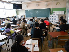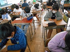 教室を回っていると、テストをしているクラスが結構あります。小学校の場合、だいたい一つの単元が終わる毎に1枚ずつテストをしていくので、教科にも、単元にもよりますが、10時間ぐらい授業をしたら1回はテストをするぐらいです。それが、8教科あるので結構テストは頻繁に行われているのが現実です。