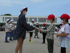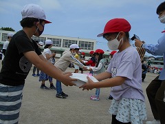 朝礼や児童集会で、児童会役員に続いて全校児童が、声に出して確認をしています。この宣言は、平成22年度前期児童会役員が作成しました。各学級や昇降口に掲示しています。